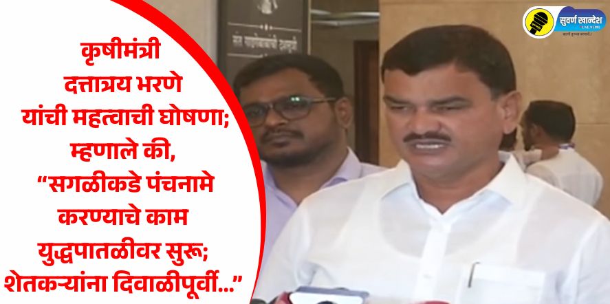 राज्यातील सर्वत्र पंचनाम्यांचे काम वेगाने सुरू आहे. शेतकरी भावंडांनी धीर धरण्याची गरज आहे. हे नैसर्गिक संकट असले तरी सरकार त्यांच्या सोबत ठामपणे उभे आहे. ज्या ठिकाणी पंचनामे पूर्ण झाले आहेत, त्या शेतकऱ्यांना नुकसानभरपाई देण्यात आली आहे. तसेच अतिवृष्टीमुळे बाधित शेतकऱ्यांना दिवाळीपूर्वी नुकसानभरपाई मिळेल, असे आश्वासनही कृषीमंत्री भरणे यांनी दिले आहे.
