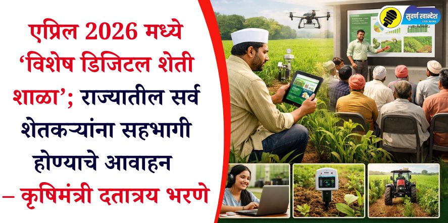मुंबई, 31 मार्च: नानाजी देशमुख कृषी संजीवनी प्रकल्प आणि पानी फाउंडेशन यांच्या संयुक्त विद्यमाने एप्रिल २०२६ महिन्यात चार ‘विशेष डिजिटल शेती शाळा’ आयोजित करण्यात येत आहेत. राज्यातील कृषी विद्यापीठे आणि कृषी विभागातील तज्ज्ञ आणि प्रगतशील शेतकरी यांचा यामध्ये सहभाग असून १ ते २२ एप्रिल २०२६ दरम्यान विशेष डिजिटल शेतीशाळेचे आयोजन करण्यात आले आहे या शेतीशाळांचा सर्व शेतकऱ्यांनी लाभ घ्यावा, असे आवाहन कृषिमंत्री दत्तात्रय भरणे यांनी केले आहे.
