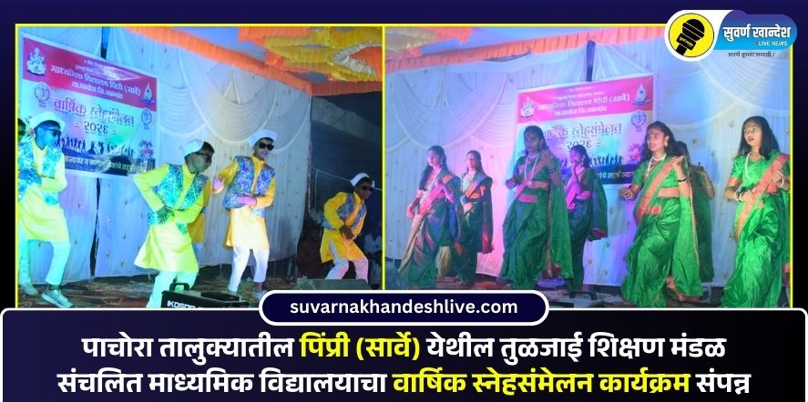 पाचोरा, 16 फेब्रुवारी : पाचोरा तालुक्यातील पिंप्री सार्वे येथील तुळजाई शिक्षण मंडळ पाचोरा संचलित माध्यमिक विद्यालयाचा वार्षिक स्नेहसंमेलन कार्यक्रम मोठ्या उत्साहात संपन्न झाला. या कार्यक्रमात मुलांच्या सुप्त कलागुणांना व उपक्रमशीलतेला वाव देण्यात आला. या वार्षिक स्नेहसंमेलनाच्या कार्यक्रमांमध्ये गणेश वंदना. रिमिक्स सॉंग, बंजारा, आदिवासी, डॉ. बाबासाहेब आंबेडकर जीवनावर आधारित गीत, धर्मवीर संभाजी महाराज नाटिका, शेतकरी गीत, जोगवा या गाण्यावर नृत्य अविष्कार सामाजिक लोककला ऐतिहासिक नाटिका अशा विविध कलागुणांनी हा कार्यक्रम संपन्न झाला.
