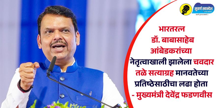 “भारतीय संविधानाने प्रत्येकाला समान हक्क दिले आहेत. या संविधानामुळेच भारत प्रगतीच्या मार्गावर आहे. त्यामुळे विषमता आणि अस्पृश्यता संपवून समतामूलक समाज निर्माण करण्याचा संकल्प सर्वांनी करावा,” असे आवाहन मुख्यमंत्री फडणवीस यांनी केले. केंद्रीय सामाजिक न्याय व अधिकारिता राज्यमंत्री रामदास आठवले यांनी महाड येथील चवदार तळे सत्याग्रहाच्या शताब्दी वर्षाच्या पार्श्वभूमीवर भव्य ‘भीमसृष्टी’ स्मारक उभारण्याची सूचना मांडली.