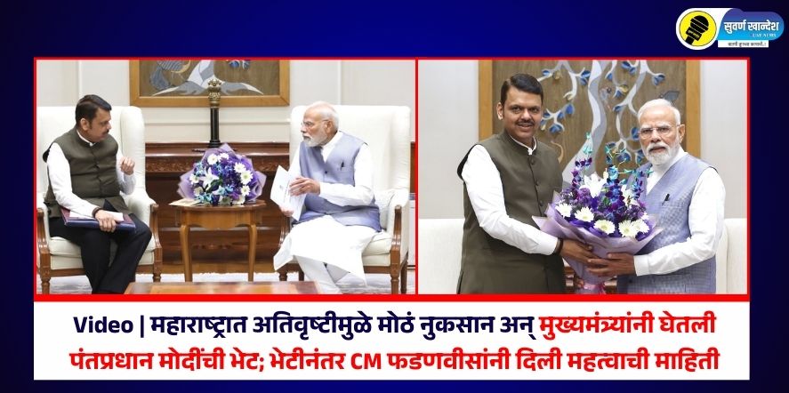नवी दिल्ली, २६ सप्टेंबर : महाराष्ट्रातील बहुतांश भागात अतिवृष्टीमुळे मोठ्या प्रमाणात नुकसान झाले असून शेतकरी शासनाकडून मदतीच्या प्रतिक्षेत आहे. दरम्यान, राज्याचे मुख्यमंत्री देवेंद्र फडणवीस यांनी पंतप्रधान नरेंद्र मोदी यांची आज भेट महाराष्ट्रातील नुकसानीची माहिती दिली. दरम्यान, या भेटीनंतर मुख्यमंत्र्यांनी माध्यमांसोबत संवाद साधला.