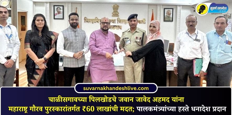 चाळीसगावच्या पिलखोडचे जवान जावेद अहमद यांना महाराष्ट्र गौरव पुरस्कारांतर्गत ₹60 लाखांची मदत; पालकमंत्र्यांच्या हस्ते धनादेश प्रदान