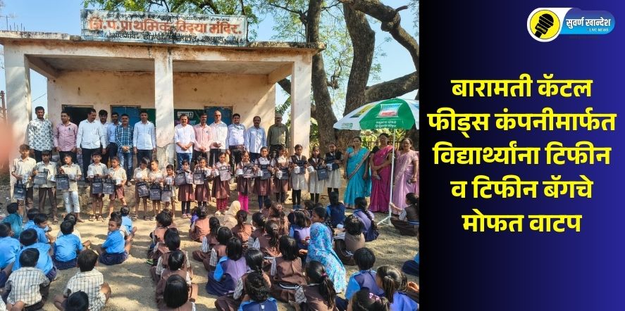 बारामती कॅटल फीड्स कंपनीमार्फत विद्यार्थ्यांना टिफीन व टिफीन बॅगचे मोफत वाटप