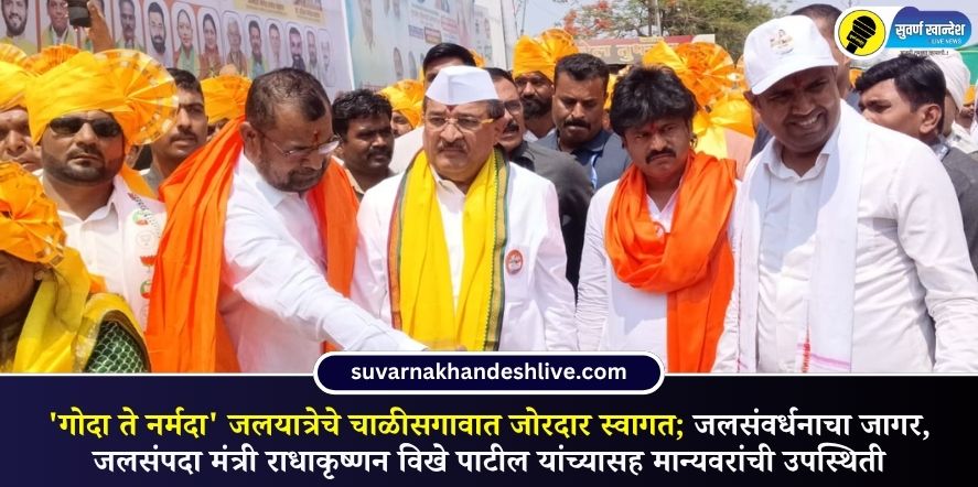 चाळीसगाव, 29 एप्रिल: दक्षिणेकडील खान्देशाचे प्रवेशव्दार असणा-या चाळीसगावात मंगळवारी कन्नड घाटाच्या पायथ्याशी पुण्यश्लोक अहिल्यादेवी होळकर यांच्या गगनभेदी गजरात श्रीक्षेत्र त्र्यंबकेश्वर मंदिर आणि चौंडी येथून प्रारंभ झालेल्या ‘गोदा ते नर्मदा’ पुण्यश्लोक अहिल्यादेवी होळकर जलयात्रेचे दूपारी जोरदार स्वागत करण्यात आले. पुण्यश्लोक अहिल्यादेवी होळकर यांच्या त्रिशताब्दी जयंतीनिमित्त या जलयात्रेचे आयोजन करण्यात आले असून तिचा खान्देशात प्रवेश झाला आहे. आमदार मंगेश चव्हाण यांनी यात्रेचे स्वागत केले.