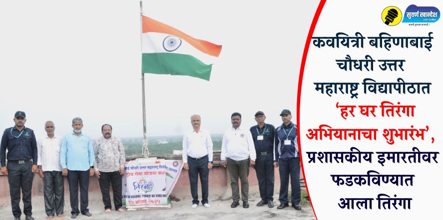 जळगाव, 13 ऑगस्ट : कवयित्री बहिणाबाई चौधरी उत्तर महाराष्ट्र विद्यापीठाच्या राष्ट्रीय सेवा योजना एककांमध्ये हर घर तिरंगा अभियान-2025 राबविण्यात येते आहे. या माध्यमातून आज विद्यापीठाचे कुलसचिव डॉ. विनोद पाटील हस्ते विद्यापीठाच्या प्रशासकीय इमारतीवर तिरंगा लावण्यात आला. यावेळी राष्ट्रीय सेवा योजनेचे संचालक डॉ. सचिन नांद्रे, वित्त विभागाचे महेंद्र पाटील, शिक्षकेत्तर कर्मचारी उपस्थित होते.