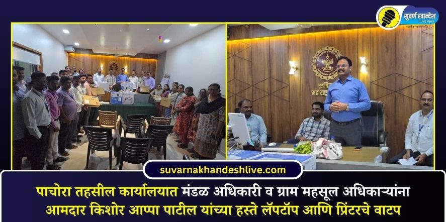 पाचोरा, 3 एप्रिल: महसूल प्रशासन अधिक गतिमान व कार्यक्षम करण्याच्या उद्देशाने पाचोरा तहसील कार्यालयात मंडळ अधिकारी व ग्राम महसूल अधिकाऱ्यांना लॅपटॉप आणि प्रिंटरचे वाटप करण्यात आले. या कार्यक्रमात पाचोरा-भडगाव मतदारसंघाचे आमदार किशोर आप्पा पाटील यांच्या हस्ते 21 लॅपटॉप व 61 प्रिंटरचे वितरण करण्यात आले.