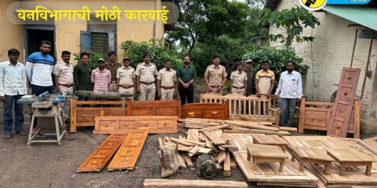 किनगाव येथील रामचंद्र पाटील यांचे अवैध फर्निचर दुकानवर सापळा रचून धाड टाकली असता त्यात दरवाजा फालके 08, पलंग 02, सोफा सेट 01, साग नग 72, चौरंग 04, तसेच लाकूड कट्टर मशीन 01, असा एकूण 75,000 रूपये किंमतीचा माल जप्त करण्यात आला.