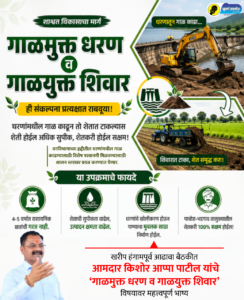 ‘गाळमुक्त धरण व गाळयुक्त शिवार’ ही संकल्पना प्रत्यक्षात प्रभावीपणे राबवली गेली पाहिजे. यासाठी राज्य शासनाकडून आवाहन करण्यात आले आहे. या अनुषंगाने पाचोरा व भडगाव तालुक्यातील शेतकऱ्यांनी आगामी काळात धरणांमधील गाळ काढून तो आपल्या शेतात टाकल्यास पुढील चार-पाच वर्षांत रासायनिक खतांची गरज भासणार नाही, असे आमदार किशोर आप्पा पाटील यांनी सांगितले. तसेच शेतात गाळ टाकताना महसूल विभागाकडून कोणतीही कारवाई होणार नाही, याची दक्षता प्रशासनाने घ्यावी, असे आवाहनही त्यांनी केले.