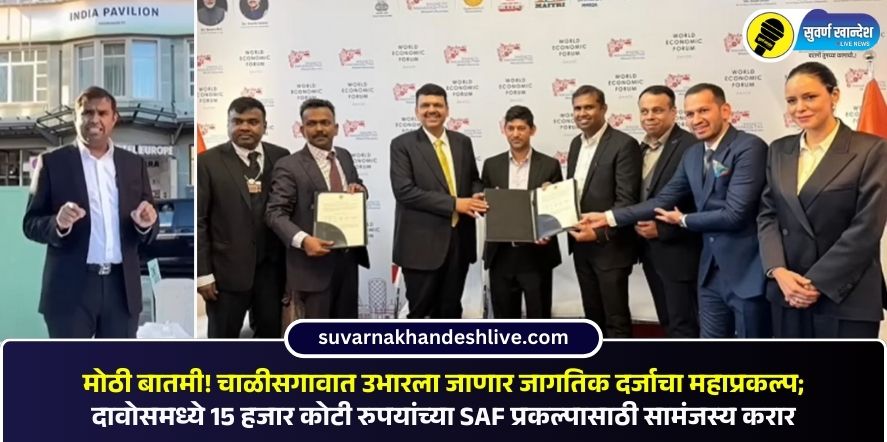 चाळीसगाव/दावोस, 22 जानेवारी : स्वित्झर्लंडमधील दावोस येथे वर्ल्ड इकॉनॉमिक फॉरम 2026 च्या निमित्ताने मुख्यमंत्री देवेंद्र फडणवीस यांच्या नेतृत्वाखाली महाराष्ट्रासाठी मोठ्या गुंतवणूक करार होत असताना चाळीसगाव तालुक्यासाठी मोठी बातमी समोर आली आहे. चाळीसगाव तालुक्यात सुमारे १५,००० कोटी रुपयांचा Sustainable Aviation Fuel (SAF) प्रकल्प उभारण्याचा सामंजस्य करार महाराष्ट्र शासन व अमेरिका सॅन फ्रान्सिस्को येथील ACTUAL HQ कंपनीसोबत करण्यात आला आहे. याबाबतची माहिती चाळीसगावचे आमदार मंगेश चव्हाण यांनी सोशल मीडियाच्या माध्यामातून दिली आहे.