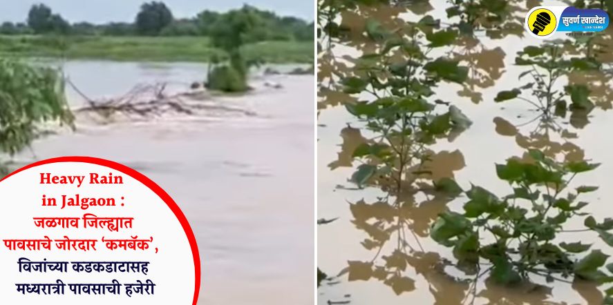 जळगाव, 17 ऑगस्ट : गेल्या काही दिवसांपासून प्रतीक्षेत असलेल्या पावसाने अखेर जळगाव जिल्ह्यात दमदार हजेरी लावली आहे. शनिवारी मध्यरात्रीनंतर विजांच्या कडकडाटासह जिल्ह्यातील अनेक भागात मुसळधार पावसाची नोंद झाली. काही ठिकाणी तर अतिवृष्टी झाल्याची माहिती समोर आली आहे.