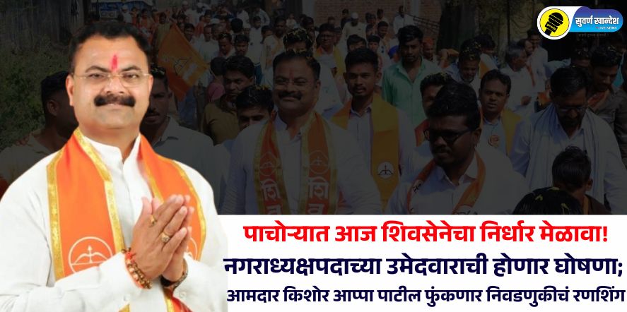 आमदार किशोर आप्पा पाटील यांच्या वाढदिवसानिमित्त पाचोरा कृषी उत्पन्न बाजार समितीच्या आवारात आज सायंकाळी शिवसेनेचा निर्धार मेळावा पार पडणार आहे. जळगाव जिल्ह्याचे पालकमंत्री गुलाबराव पाटील यांची या मेळाव्यासाठी प्रमुख उपस्थिती लाभणार आहे. निर्धार मेळाव्यासाठी शिवसेनेकडून जय्यत तयारी करण्यात आली असून पाचोऱ्यात आज शिवसेनेचे शक्तीप्रदर्शन पाहायला मिळणार आहे.