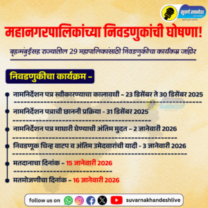 • नामनिर्देशन पत्र स्वीकारण्याचा कालावधी – 23 डिसेंबर ते 30 डिसेंबर 2025