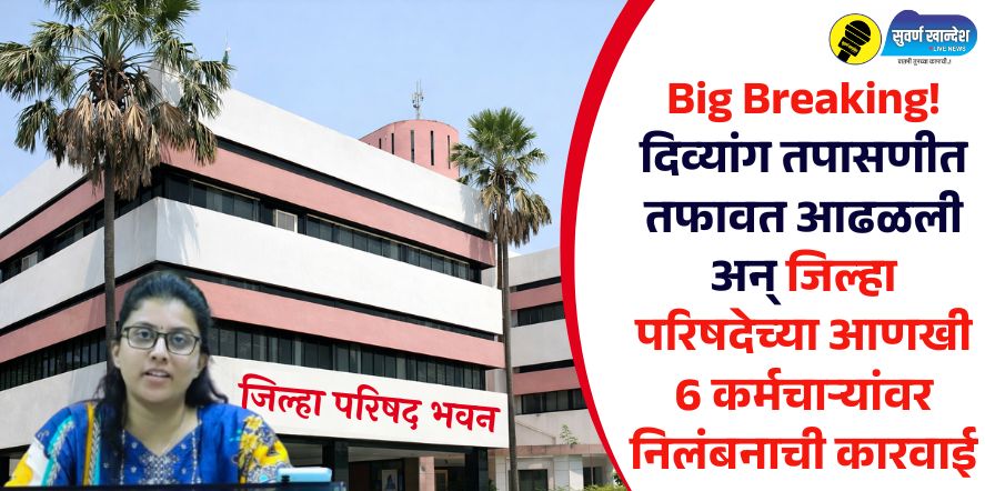 जळगाव, 21 जानेवारी : राज्याच्या दिव्यांग सक्षमीकरण विभागाच्या आदेशानुसार राज्यातील दिव्यांग कर्मचारी व दिव्यांग व्यक्तींच्या दिव्यांग प्रमाणपत्राची तपासणी मोहीम हाती घेण्यात आली आहे.या तपासणीत जिल्हा परिषदेच्च्या ६ कर्मचाऱ्यांची निकषानुसार टक्केवारीत तफावत आढळून आल्याने मुख्य कार्यकारी अधिकारी मिनल करनवाल यांनी सहा कर्मचाऱ्याविरुद्ध शुक्रवार दि २३ जानेवारी रोजी निलंबनाची कारवाई केली आहे.