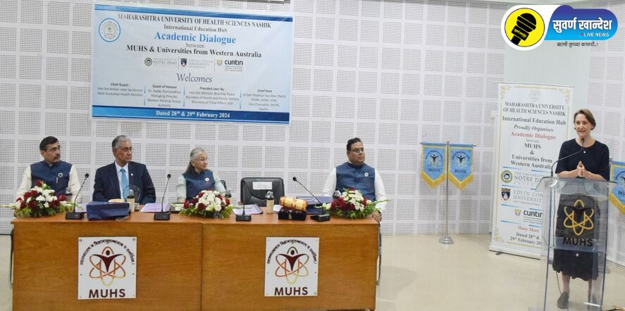 नाशिक, 1 मार्च : आरोग्य विज्ञान विद्यापीठाने आरोग्य शिक्षण क्षेत्रात महत्वपूर्ण कामगिरी केली असून ऑस्ट्रेलियन विद्यापीठासमवेत अनेक विविध प्रकारचे उपक्रम राबविले जाणार असल्याचे प्रतिपादन असल्याने विद्यापीठाच्या वेस्टर्न ऑस्ट्रेलियाच्या आरोग्य मंत्री अंबर-जेड सॅन्डरसन यांनी केले. महाराष्ट्र आरोग्य विज्ञान विद्यापीठ आणि युनिव्हर्सिटी ऑफ वेस्टर्न ऑस्ट्रेलिया यांचा ’अॅकेडमिक डायलॉग’ या दोन दिवसीय कार्यक्रमाचे विद्यापीठात आयोजन करण्यात आले आहे.